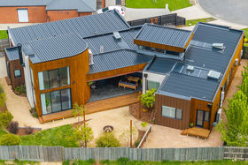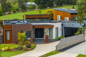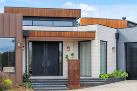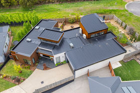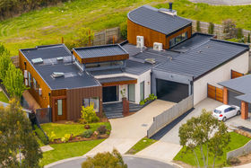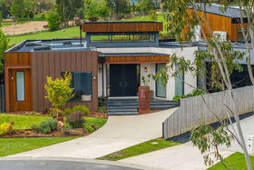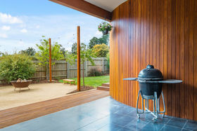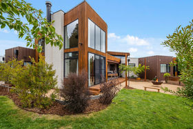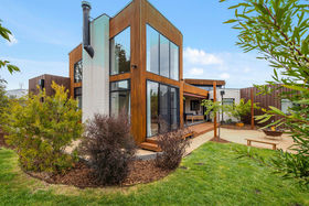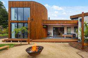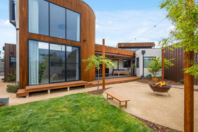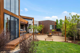 Externally, the home's bold architectural lines are accentuated by Corten steel cladding and stack-bond blockwork, sitting harmoniously within its private 993m² setting at the end of a peaceful court. The north-facing backyard is perfectly oriented for year-round enjoyment, featuring a covered alfresco terrace, fire-pit zone, and low-maintenance dry-river landscaping. The fully fenced garden includes gated access to nearby green spaces and Woodend's tree-lined streets.