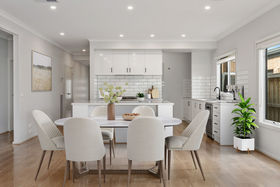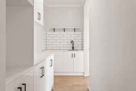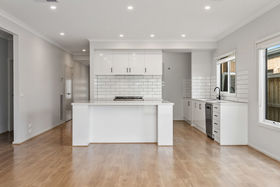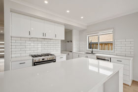 The heart of the home is the stunning kitchen, large island bench, sleek white cabinetry, black fittings and a generous butler's pantry offering extra storage and preparation space.
