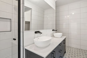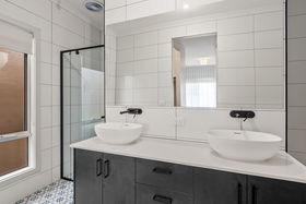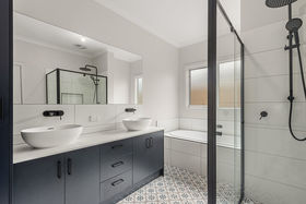 The master suite provides a peaceful retreat, featuring double walk-in robes and a stylish ensuite appointed with twin vanities and matte-black tapware.