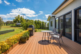 From here, the outlook shifts to lush garden landscaping, rolling paddocks and a natural backdrop alive with birdlife and visiting kangaroos, creating a peaceful sense of rural escape while still being connected to the main residence.