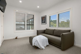 Inside, the retreat includes extensive built-in robes and a luxurious ensuite with a double shower, double sinks and a separate toilet, ensuring comfort and privacy.