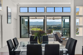 Inside, the home unfolds into a magnificent open-plan living, dining and kitchen precinct, where soaring 4.2 metre ceilings draw in natural light and showcase the views in all their splendour.
