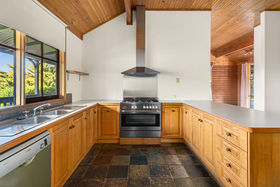 Step inside through the welcoming entry foyer and into a warm, inviting lounge featuring vaulted ceilings, timber beams and a floor-to-ceiling brick fireplace-the perfect centrepiece for cosy nights in.