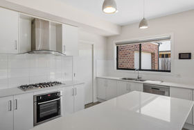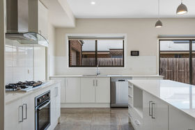 The expansive kitchen, dining and living area is perfect for entertaining and everyday family life. The kitchen features a large island bench with breakfast bar, stainless steel appliances, double sinks, pendant lighting and abundant storage. A large walk-in pantry provides even more space and direct access to the garage, making grocery drop-off effortless.