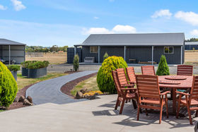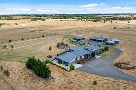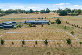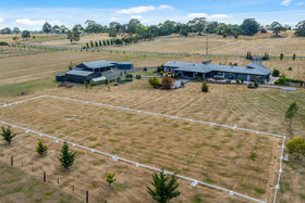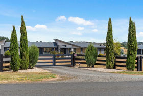 Luxury Architectural Living on 16 Acres - A Refined Country Retreat Moments from Kyneton Set on an expansive 16 acres (approx.), this impressive architectural residence seamlessly blends luxury, functionality, and intelligent design. Built by Metricon, one of Australia's most awarded builders, and constructed using a quality combination of Hebel and Weathertex, the home has been thoughtfully created to deliver outstanding flexibility, everyday liability, and exceptional comfort. At its heart is a superb entertainer's kitchen featuring premium appliances including a dual oven, stone benchtops, soft-close doors and drawers, and a chef's dream butler's pantry. The open-plan design flows effortlessly into multiple living zones, while expansive glazing throughout captures picturesque garden vistas and fills the interiors with natural light. The home offers four generous bedrooms, led by a master suite that delivers a true hotel-style experience. Complete with a luxurious ensuite, walk-in robe, and an adjoining lounge or study, it provides the perfect private retreat and an ideal space for working from home. The remaining bedrooms all include built-in robes, ensuring excellent storage and comfort for family or guests. A deep double garage of approximately 10.3 metres deep, adds outstanding versatility, easily accommodating a workshop, home gym, or additional storage needs. Designed with sustainability front of mind, the property is supported by two 110,000-litre rainwater tanks connected to the home, along with an additional 30,000-litre tank, providing exceptional water security the current owners have never run out. Outdoor living is equally impressive, with a fabulous alfresco area showcasing sweeping panoramic views, complemented by extensive landscaping and beautifully established gardens and a spa, make this a truly finished property. Two substantial sheds, both with concrete flooring, further enhance the property's flexibility. For the horse enthusiast there are 5 paddocks ready to go! Additional features include gas ducted heating throughout, complemented by double glazing for year-round comfort, a state-of-the-art security system with eight cameras and internal door detectors, and a fully integrated home theatre system. The thoughtfully curated outdoor spaces require nothing more to be done, with established gardens showcasing a lovely mix of native and deciduous shrubs and trees. Located just minutes from Kyneton township, with easy access to medical facilities, transport, shopping, and dining, this exceptional property is perfectly suited to families, professionals, or those seeking space, privacy, and refined country living in a luxurious, light-filled setting.